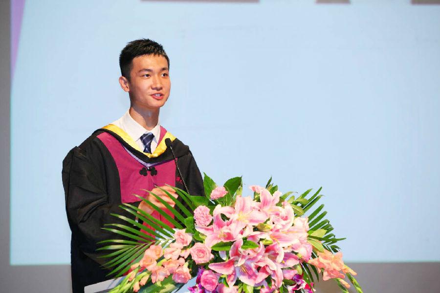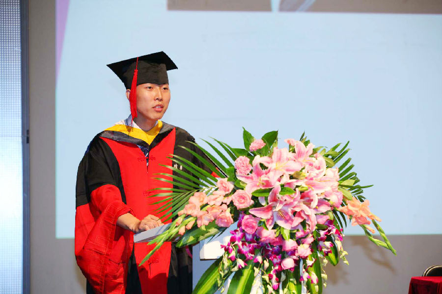 教师代表唐杰通过分享自己人生的四个故事,用“咖啡”、“顶天立地”、“利他”与“原则”寄语毕业生,希望毕业生能热爱科研,专注求真,坚守原则,奉献社会。