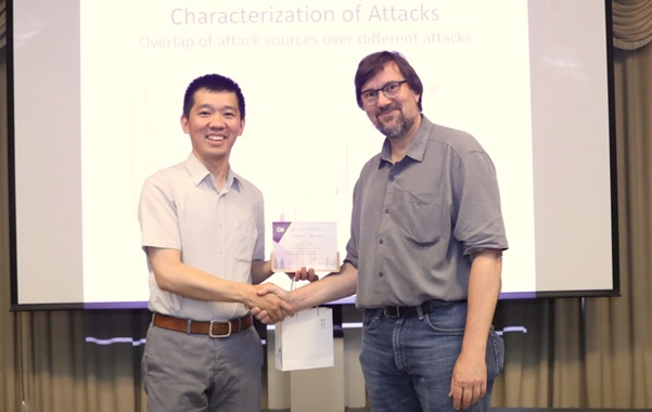 帕克森教授做了题为“大海捞毒针——网络入侵检测与机器学习的误区”的学术报告,介绍了由于网络空间中政治、经济等冲突的加剧,政府、企业等许多机构正在面临的高级持续威胁(Advanced Persistent Threats)。而这些威胁通常被淹没在海量的正常网络数据洪流中,不易被觉察。如何检测出这类危险的攻击,如何在海量的数据流中找到这些攻击行为堪比大海捞针。帕克森教授结合他在学术界和产业界多年的经验,分析了当前网络入侵检测系统中存在的一些困难问题,包括学术研究中的一些陷阱、领域知识对APT攻击检测的重要性、以及在这些领域中应用机器学习等。