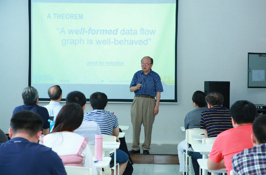 高光荣教授的研究生涯基本围绕数据流计算进行。在演讲中高教授针对目前人工智能与大数据应用的挑战,介绍了数据流计算模式在应对计算机体系结构与编程语言发展瓶颈方面的优势,及其在被广泛使用的深度学习开发框架等中所扮演的核心角色。高教授进一步指出,目前是一个体系结构大变革的时代,数据流计算正在复兴,年轻人应该做好准备去勇于承担根本性的科研挑战。